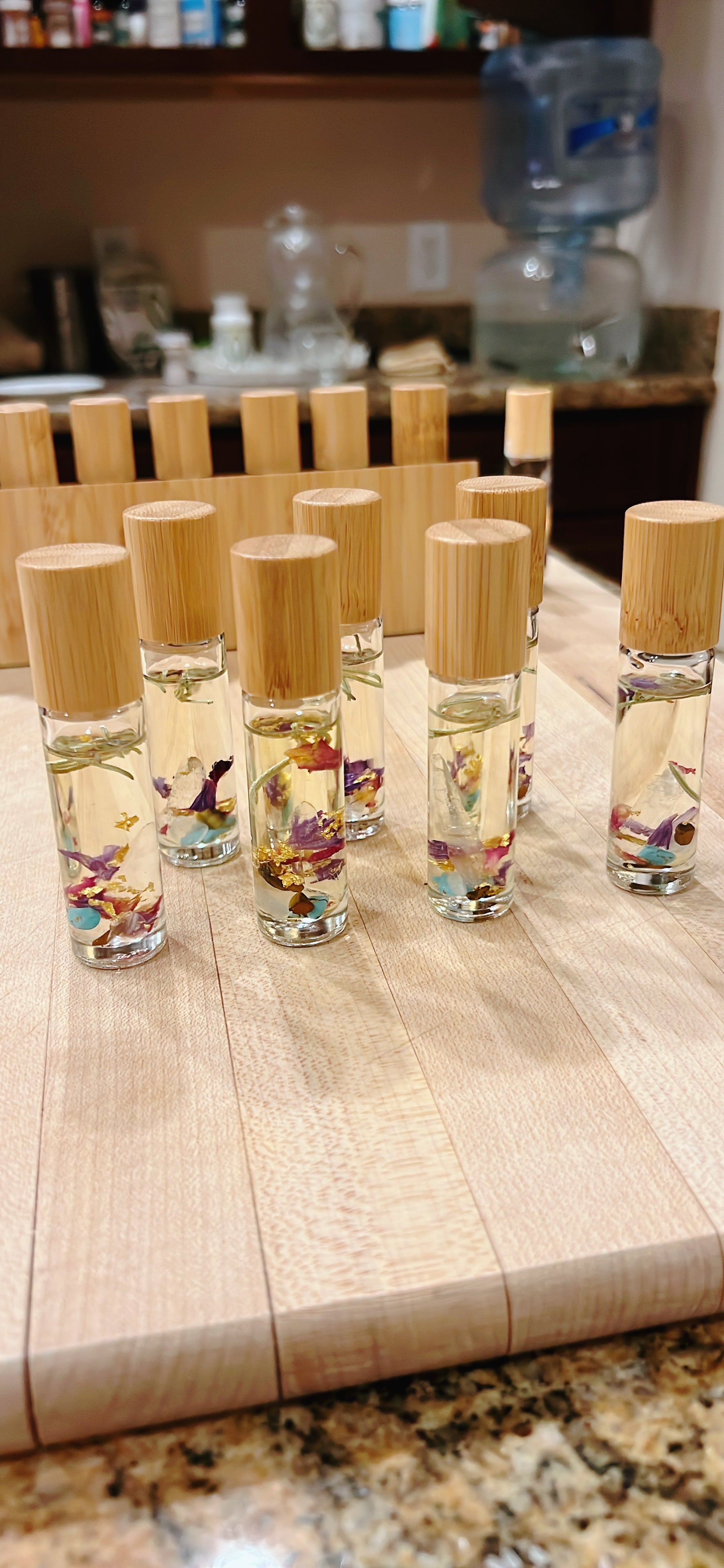 Ceremonial frequency raising oil for whenever you like to feel re-aligined and to raise your frequency. Excellent protection oil after a ceremony, a healing session and after a long day of work. Blend of Coconut oil, Frankincense, Lemongrass oil, Crystal, moon charged rose, herbs, 24k gold...